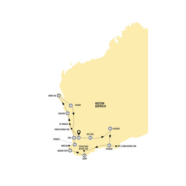 You could spend months exploring Western Australia from Perth and still only skim the surface. But with the right crew, two weeks can go a very long way. Think the limestone spires of the Pinnacles, pink lakes that look almost too bright to be real, powder-white beaches, dolphins at Monkey Mia, kangaroos on Lucky Bay and quokkas over on Rottnest Island. Then there’s Margaret River, where superb wineries make a strong case for lingering a little longer. Add record-breaking national parks and the chance to connect with Country through Aboriginal experiences along the way, and you’ve got a journey that packs plenty in without feeling rushed. This trip is accompanied by a Travel Director and Driver.
