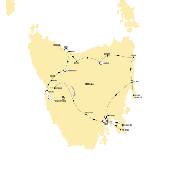Discover Tasmania at its wild, wonderful best as you loop the island in style, accompanied by a Travel Director and Driver. Chase spectacular waterfalls, wander through ancient forests and soak up big mountain and lake views across four national parks. You’ll cruise the Gordon River, breathe in the drama of Cradle Mountain, fall for Freycinet National Park’s postcard-perfect bays and step into the stories of Port Arthur Historic Site. In between, slow down in atmospheric towns, meet a Tasmanian Devil and connect with clever local producers. Expect delicious seafood, a cracking cheese tasting and a bush tucker walk with a local Aboriginal Guide.